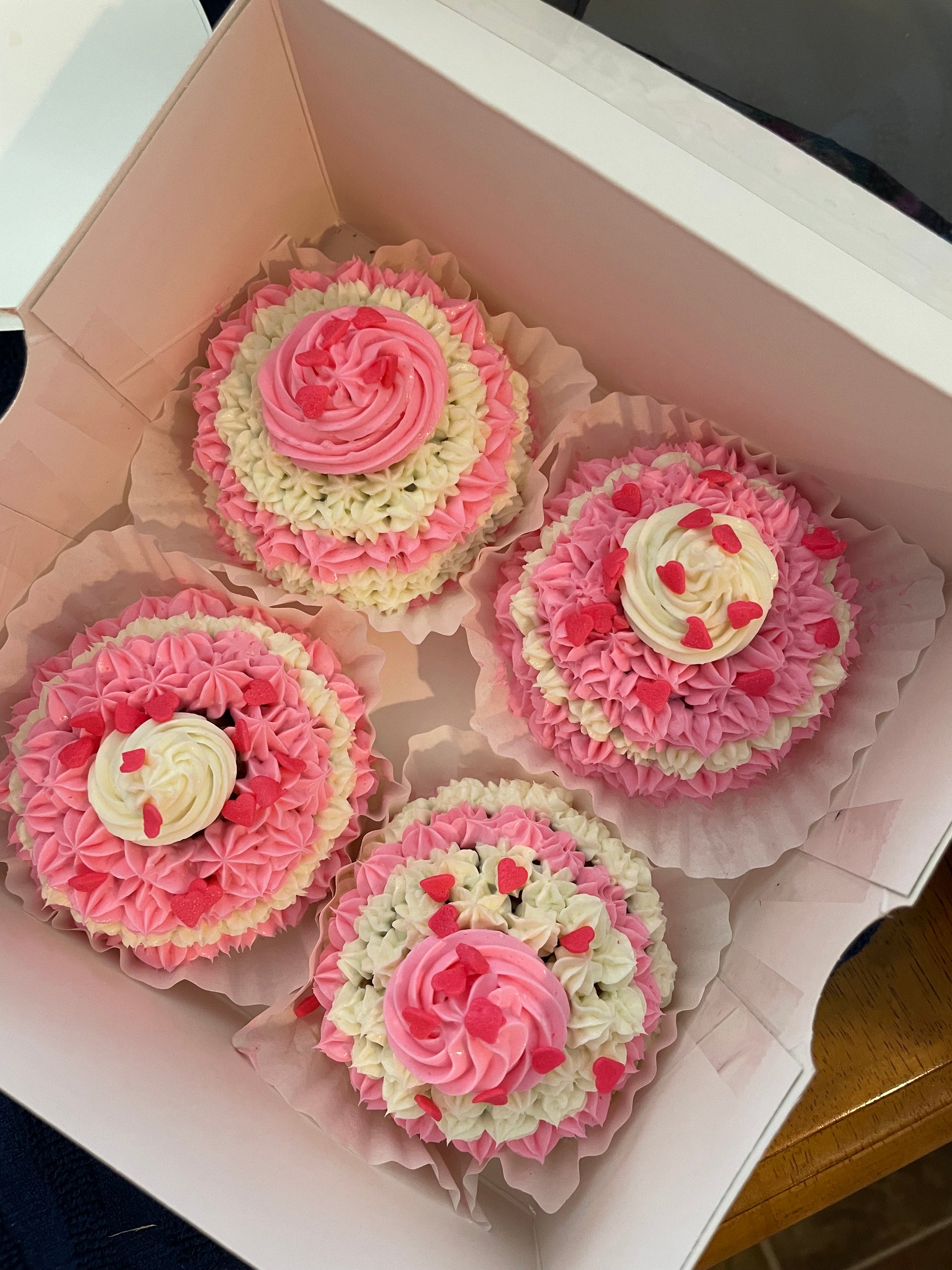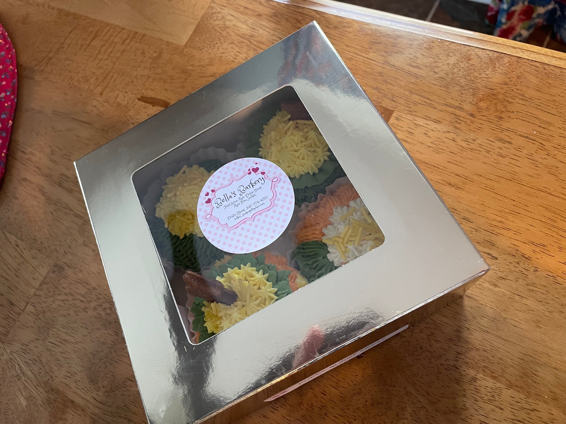 Four mini bundt cake for any occasion! Same yummy cake as our birthday cakes. Then each little cake hole is filled with a peanut butter cookie and frosted with our special frosting. To make it more special I top with doggy sprinkles and a cookie!